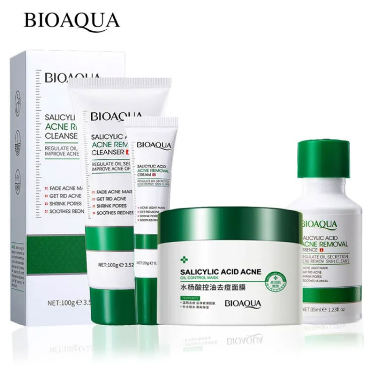 4)ماسک سالیسیلیک اسید بیوآکوا: این ماسک حاوی اسید سالیسیلیک می باشد.اسید سالیسیلیک یک ترکیب آلی می باشد. این ترکیب یک جامد بی رنگ و با طعم تلخ است. نام این ماده از نام لاتین درخت بید که salix است ریشه می گیرد. سالیسیلیک اسید به یک گروه از دارو ها به نام کراتولیتیک(عواملی که با مصرف موضعی پوست های ضخیم و پوسته پوسته را لایه برداری می کند.) تعلق دارد. ماسک ضد جوش سالیسیلیک اسید ، 1 ژل با پایه بدون روغن است. این ماده بیماری های پوستی با علائم پوسته پوسته به صورت ورقه ای و یا پولکی را درمان می کند. سالیسیلیک اسید با نرم تر کردن کراتین که پروتئینی ساختاری در پوست می باشد لایه برداری سلول های خشک پوسته پوسته را آسان می کند. در جوش ها سالیسیلیک اسید با مصرف موضعی ، سرعت تخلیه سلول های موجود در فولیکول را می کاهد و همچنین از انسداد آن ها جلوگیری می کند. این ماده جوش های سر سیاه و سفید را از بین می برد.