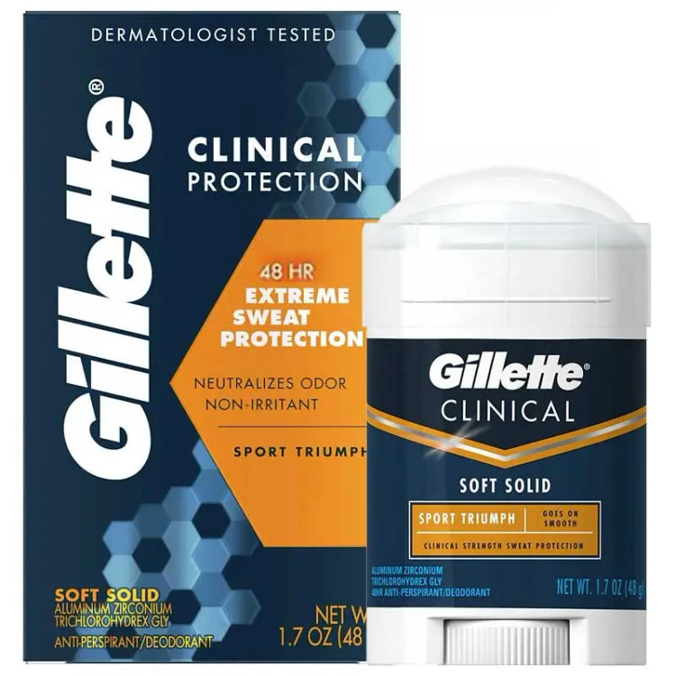 مام ژیلت کلینیکال اسپرت (Gillette Clinical Sport) یک ضد تعریق قوی است که با فناوری محافظت سه گانه در برابر گرما، فعالیت و استرس، از تعریق و بوی نامطبوع بدن جلوگیری میکند. این مام دارای ماندگاری ۴۸ ساعته بوده و با رایحه مطبوع و خنک خود، حس طراوت و شادابی را به ارمغان میآورد.